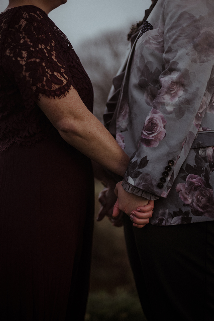 Set against the stunning backdrop of The Barn at Dalduff Farm, restrictions necessitated that the event was limited to quite literally their nearest and dearest, with just twenty people in attendance. Thankfully this did increase the options for accessorising, with an assortment of custom face masks on display (though their dog Archie definitely took home the prize for best-dressed with his stylish bowtie and matching harness. I think I'm on record as saying that pets should be mandatory at weddings?). Truly encapsulating the 2020 experience, however, the ladies had also set up a Zoom call to include those who couldn't be there in person, with the virtual guests projected at the back of the room!